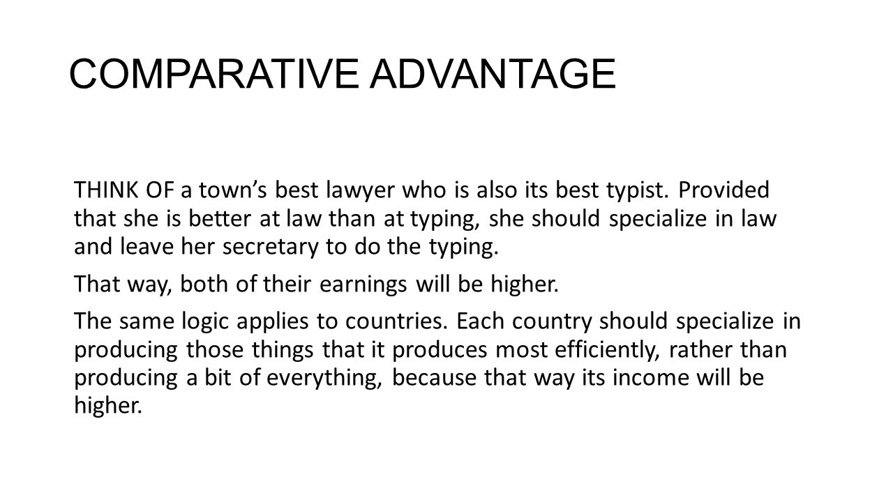برتری قابل مقایسه با برتری مطلق در تضاد است. برتری مطلق به توانایی تولید کالاها یا خدمات بیشتر یا بهتر نسبت به شخص دیگر اشاره دارد. برتری قابل مقایسه به توانایی تولید کالاها و خدمات با هزینه فرصت کمتر برمیگردد ، نه لزوماً با حجم یا کیفیت بیشتر.